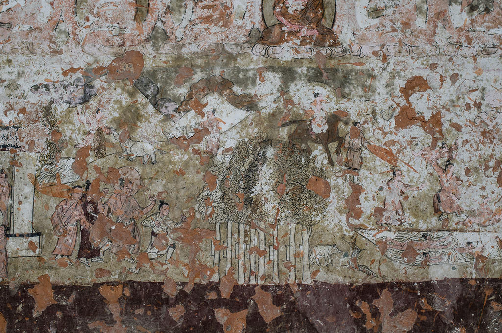 East wall: Buddhas of the Three Times and beginning of the Life of the Buddha